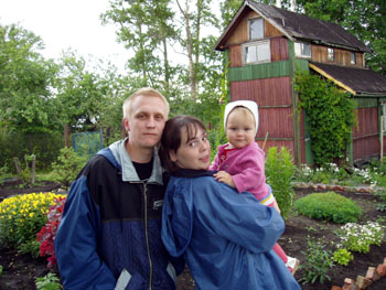 А тут все мы. Журавлёвы. Паша, Лена, Настя. Дочке год!